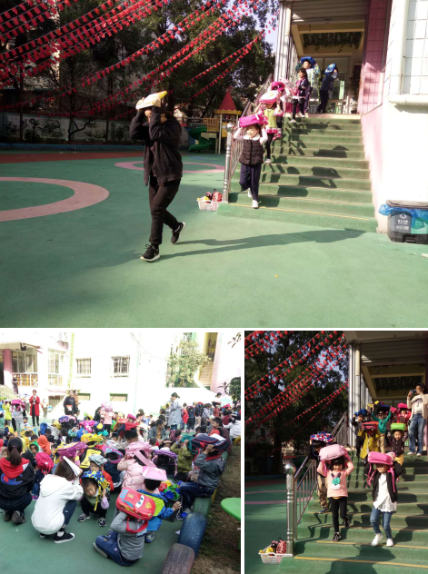 隨著(zhù)第一次警報聲的響起,老師們有序地組織幼兒進(jìn)行應急避震,跑到空曠處,并利用身邊的書(shū)包等物護住自己的頭。第二次警報聲響起,老師們有條不紊地對幼兒進(jìn)行疏散,整個(gè)演習過(guò)程無(wú)一幼兒滯留教室,全部安全撤離。