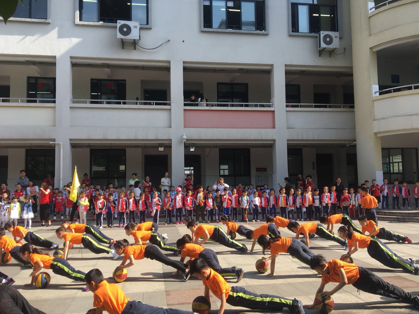 踏入賓虹小學(xué),小朋友們被一個(gè)個(gè)跳動(dòng)的七彩精靈所吸引。操場(chǎng)上,不同年齡段的學(xué)生在跳著(zhù)富有特色的素質(zhì)操,另小朋友們一邊參觀(guān),一邊不停地贊嘆。