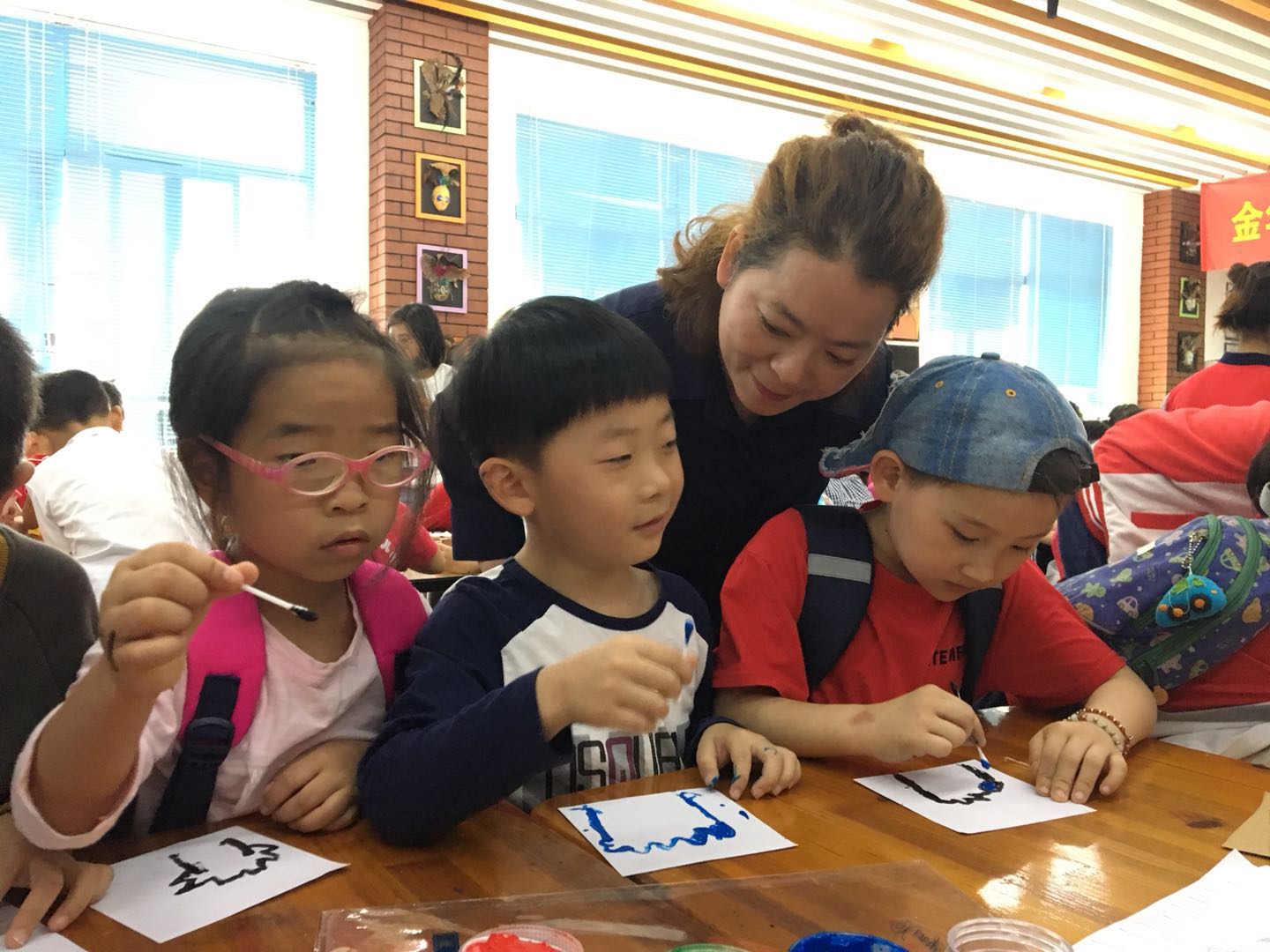 跟著(zhù)老師的步伐,小朋友們走到了賓虹小學(xué)的美術(shù)標點(diǎn)工作室,聆聽(tīng)著(zhù)賓虹小學(xué)黃老師的美術(shù)課,和哥哥姐姐一起繪制;,一起參與涂色,共同描繪七彩智慧樹(shù)。