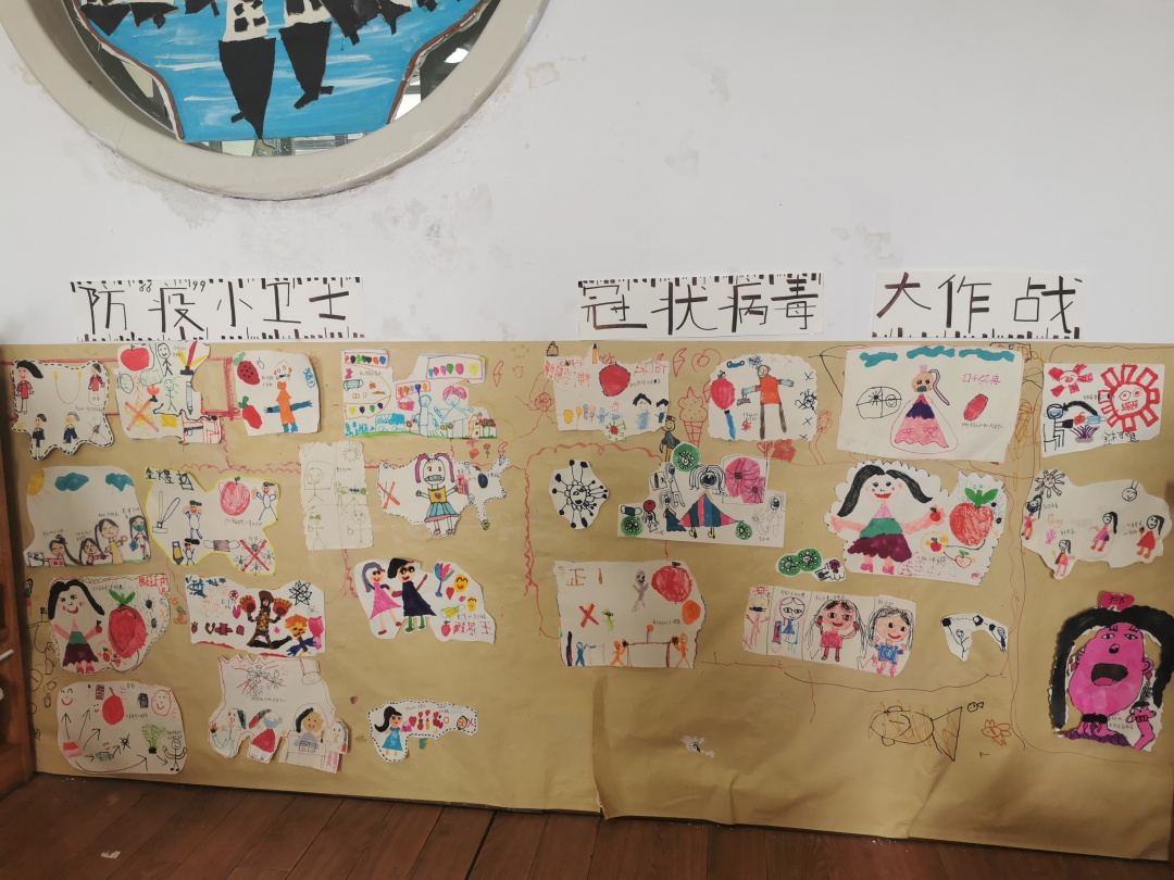 創(chuàng )設抗疫防疫活動(dòng)區角,讓幼兒與課程互動(dòng),結合課程內容,讓孩子們畫(huà)出自己對病毒的認知,寫(xiě)下他們對英雄的敬意,表達抗疫決心、致敬抗疫英雄。