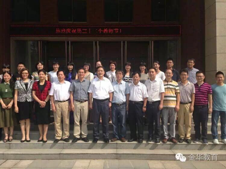 趙光君書(shū)記與金華市外國語(yǔ)學(xué)校老師親切握手,并合影留念