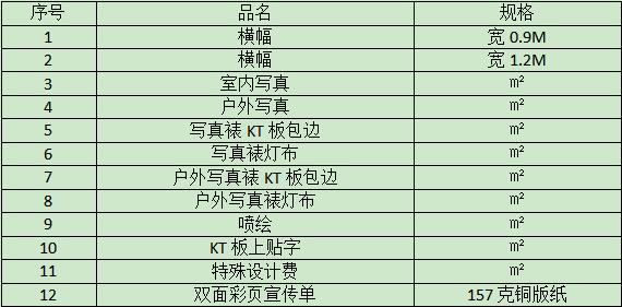 二、廣告業(yè)務(wù)清單及規格