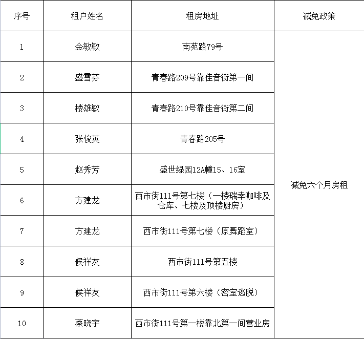 租金減免信息公開(kāi)